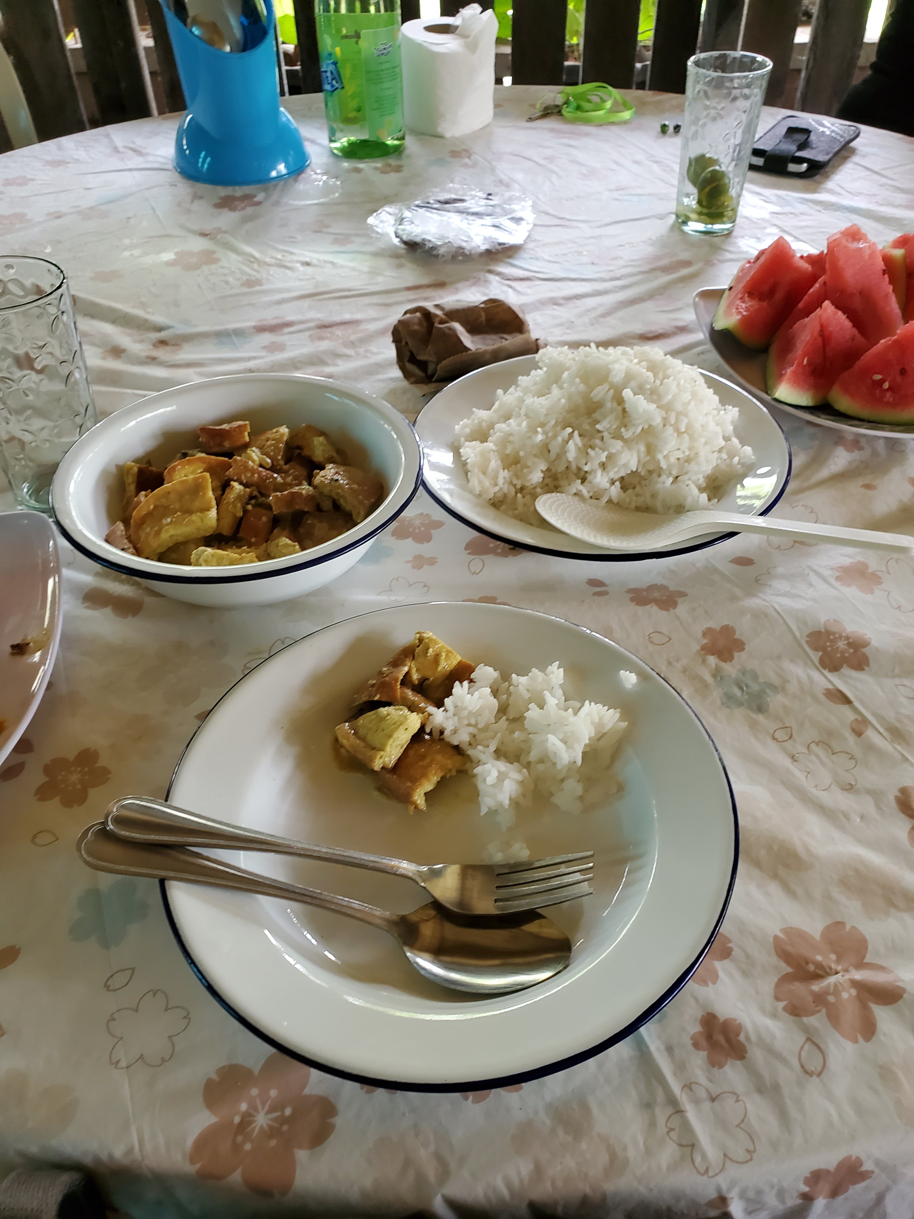 The food has been incredible! We went to a couple restaurants and they are all open air restaurants since the weather is always nice, a little chilly and windy at night but overall great! I stood in the sun for 10 minutes and already burned, which honestly I would take over the snow storm at home! Yesterday our work was to help prepare a pig to roast. We stuffed it with lemon grass, garlic, ginger and chilis all from the farm and put it in a brick oven for 3hrs, then finished it over hot coals. It was the best pork I will ever have in my life. The skin was so crispy and flavorful! On the way home there was a small hiccup with the tricycle (motorbike with a side car) we took home.. he crashed into a wall. The brakes went out so we didnt really have a choice, nothing serious, just bumped around. Hell of a first experience, but a great story.