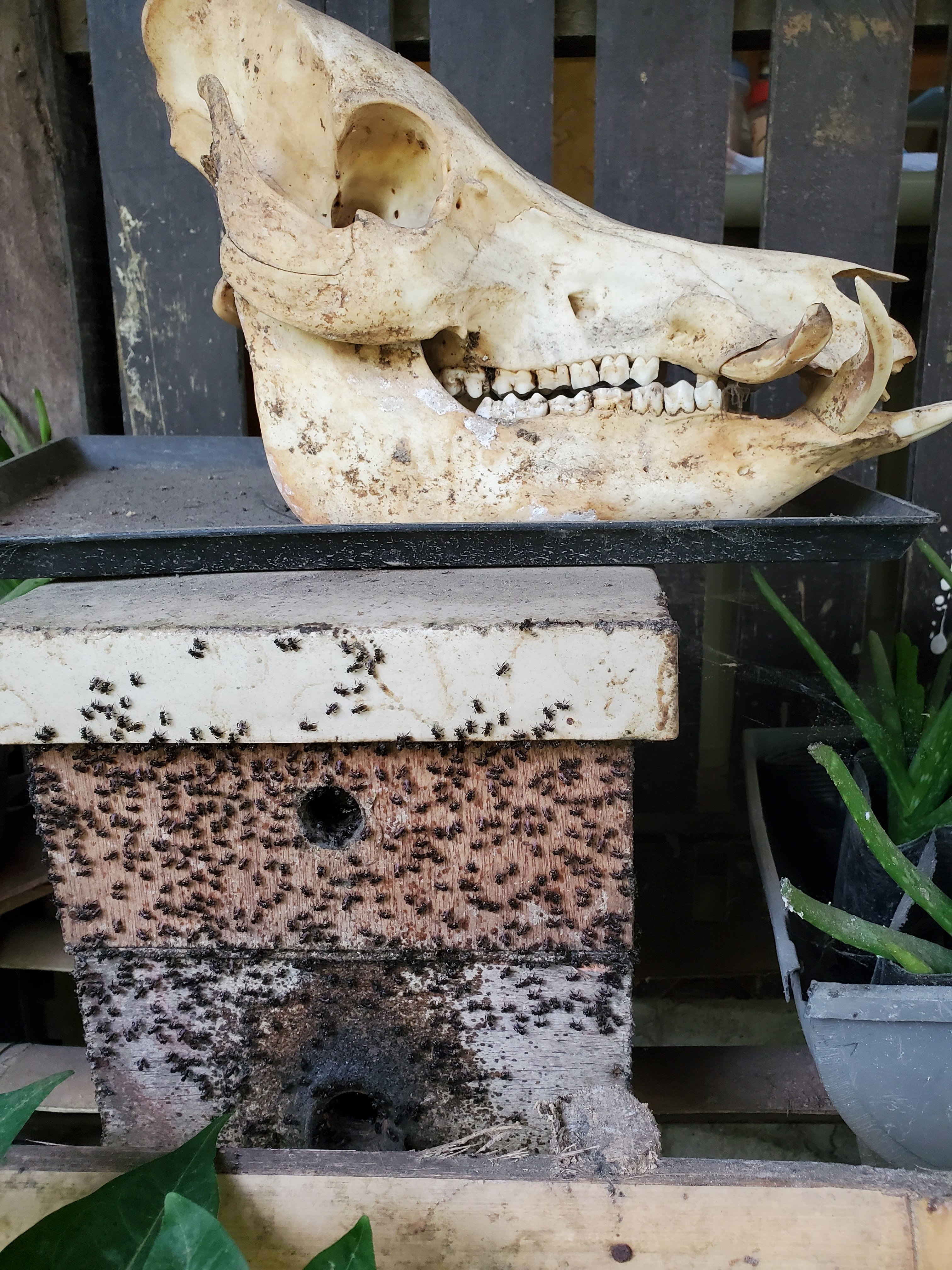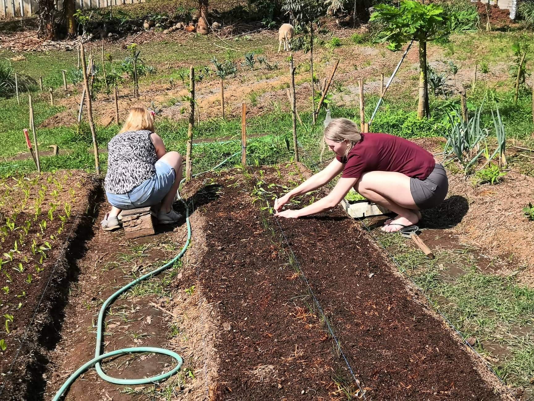 Now on to the fun stuff!! I thought working on the farm would be dirty and difficult but it’s been the opposite! We spent an hour planting in the garden a couple days ago, went to make lechon yesterday and today we moved compost and shaved coconuts to make virgin coconut oil. We spend our mornings on the deck for breakfast and tea, work for an hour or two at most, then lunch, take a siesta break and we’ve been going out to dinner or enjoying homemade food. There also hasnt been much work to do since the volcano ash has ruined almost all the fruit and vegetables we could harvest. The farm owners Henry and Mercedes are incredible!! Henry is a business consultant and him and his wife have lived all over the world. They know everybody and are helping me plan my last 2 weeks here since they know the best places! They have bee hives in the farm as well! The bees here are tiny and black, they also don’t sting! We opened a couple hives to get honey and it was actually a sour honey.